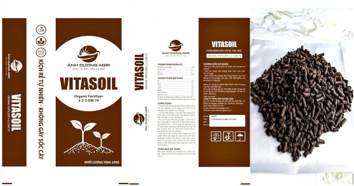 - Hữu cơ: Cây cần một lượng nhỏ hữu cơ để bổ sung cải tạo nếu cần thiết khi quan sát đất bạc màu, ít dinh dưỡng. Bà con có thể cung cấp dinh dưỡng cho cây sầu riêng tơ bằng cách bón thêm phân hữu cơ vi sinh VITA SOIL để vừa cung cấp 1 lượng dinh dưỡng ổn định, từ từ cho cây con hấp thu vừa hỗ trợ cải tạo đất tơi xốp kích thích bộ rễ phát triển khỏe mạnh.